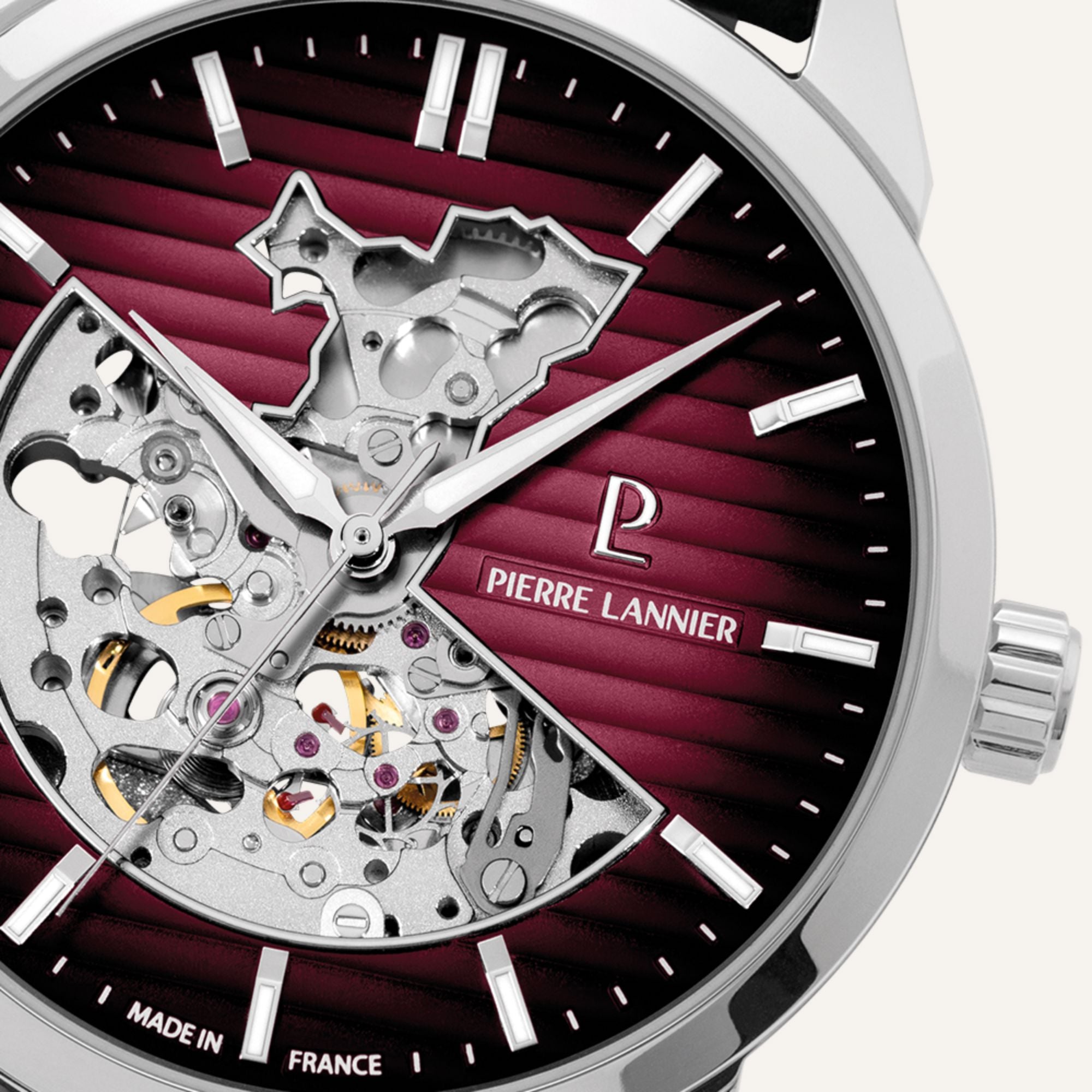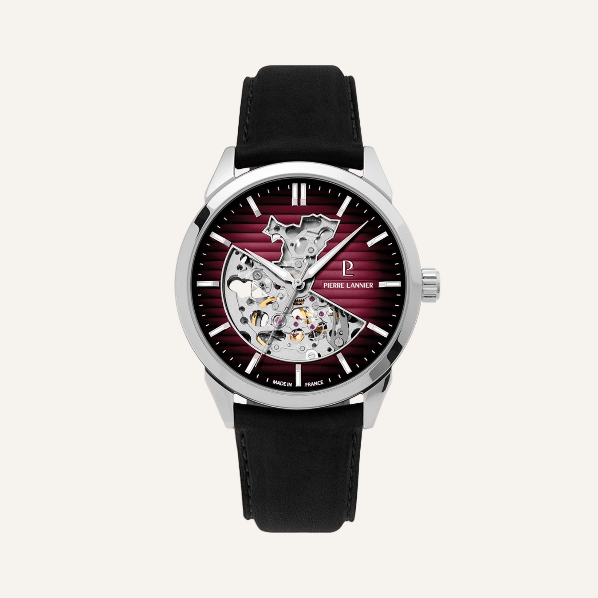 • Cadran : Bordeaux fumé semi-mat avec ouverture cœur – motif "Alsace"